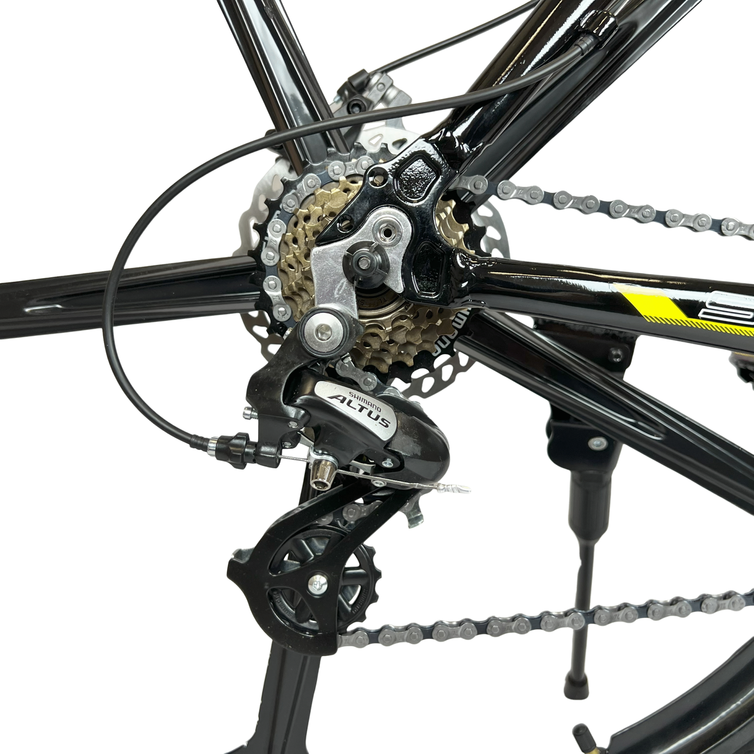 - Nowa geometria ramy aluminiowej z hakiem przerzutki,