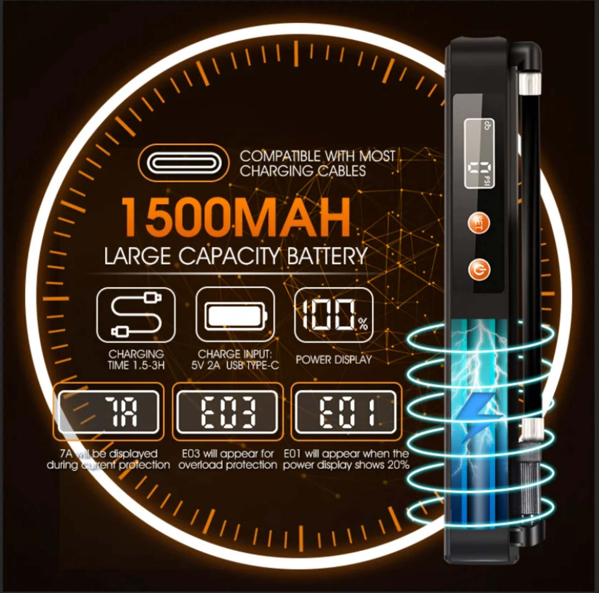 ROWEROWA POMPKA ELEKTRYCZNA - sprężarka powietrza do 130PSI bezprzewodowy przenośny kompresor do pompowania opon roweru , motocykla lub piłki