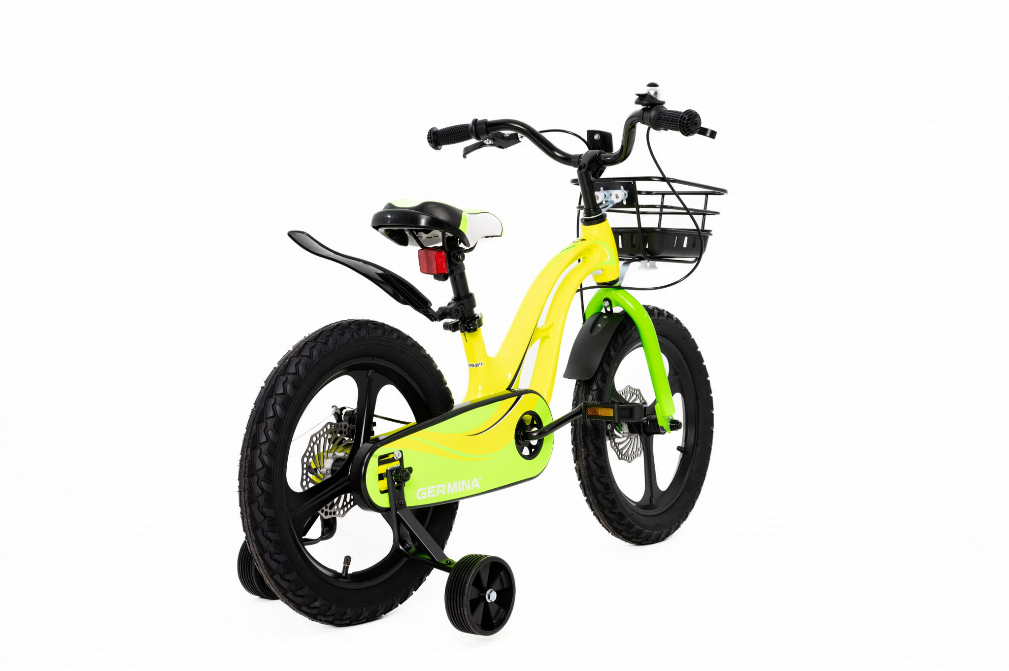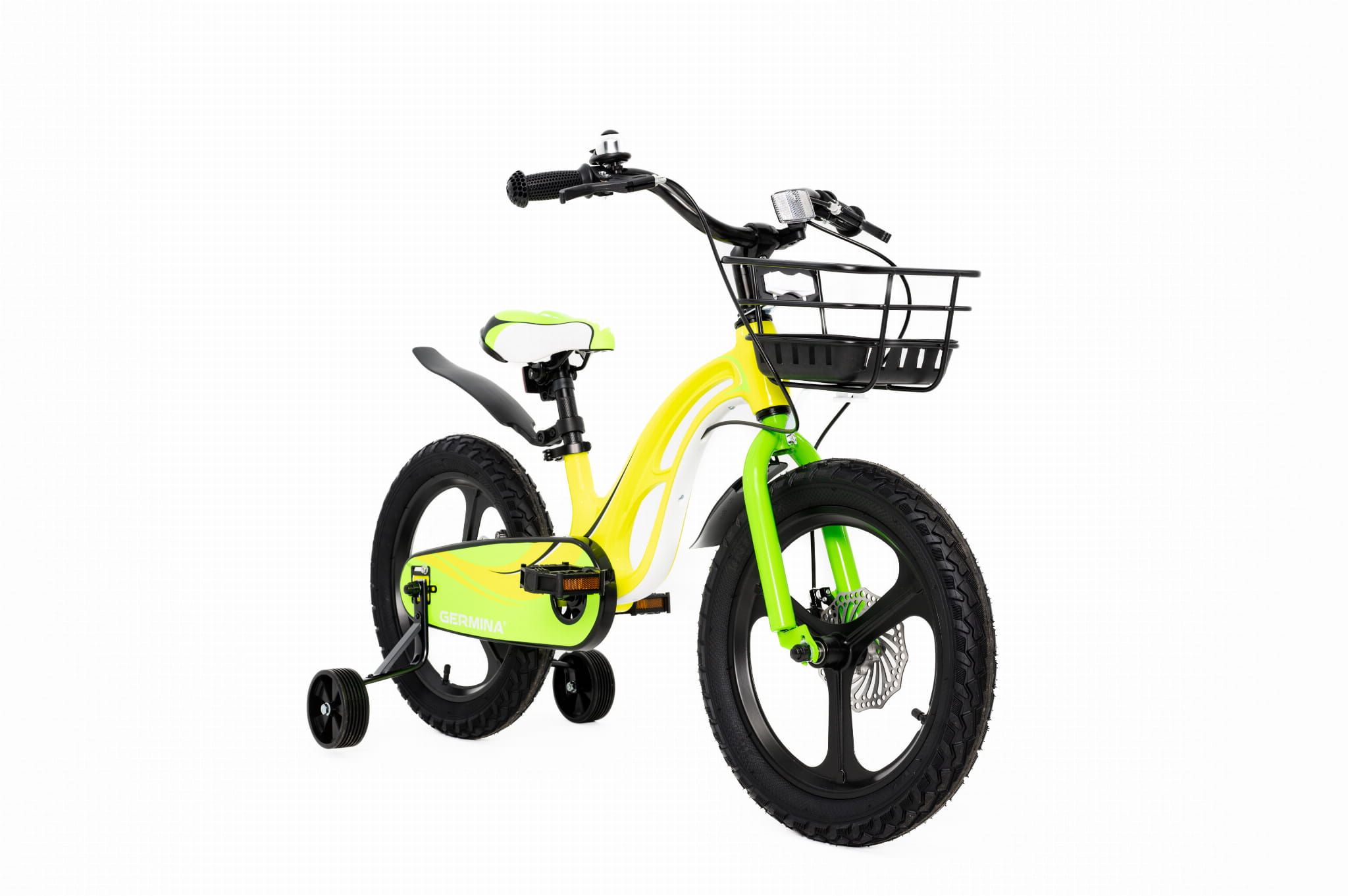 Rowerek dziecięcy MAGNESIUM marki Germina ma ramę magnezową dzięki czemu jest dużo lżejszy od podobnych rowerów z rama stalową