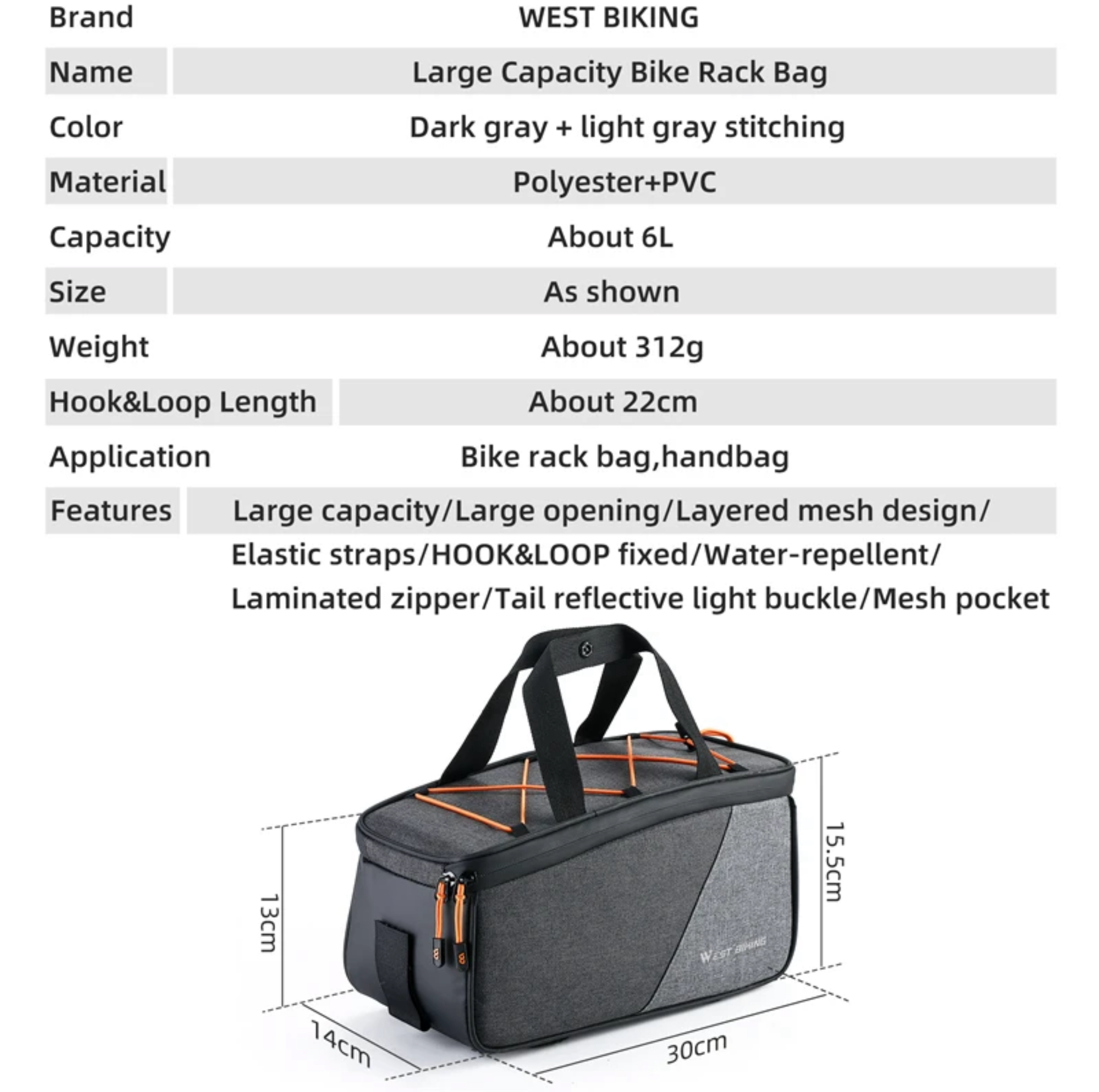 • wymiary: 30cm x 14cm x 15cm