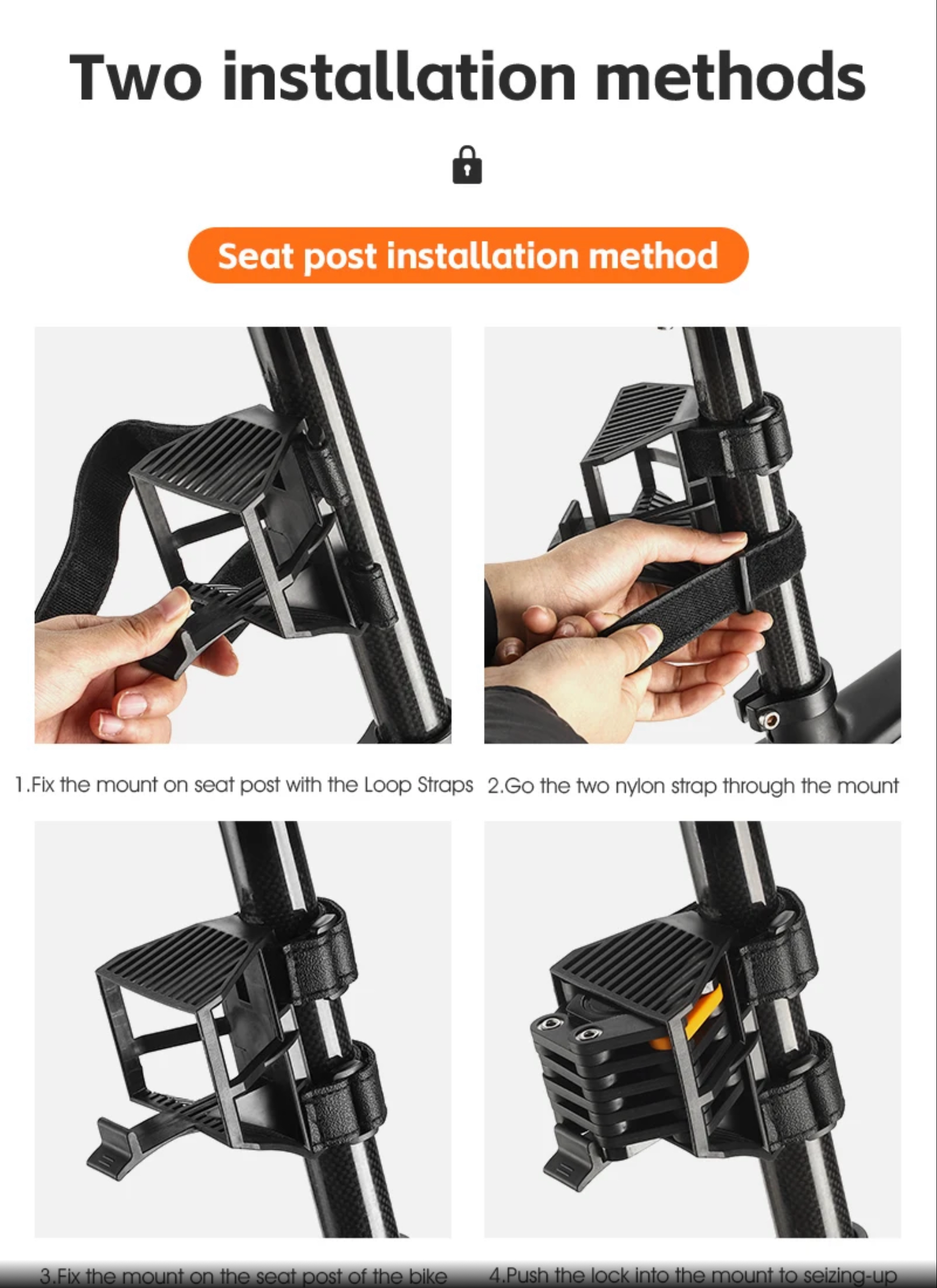 • Uchwyt rowerowy do przewożenia zapięcia w zestawie