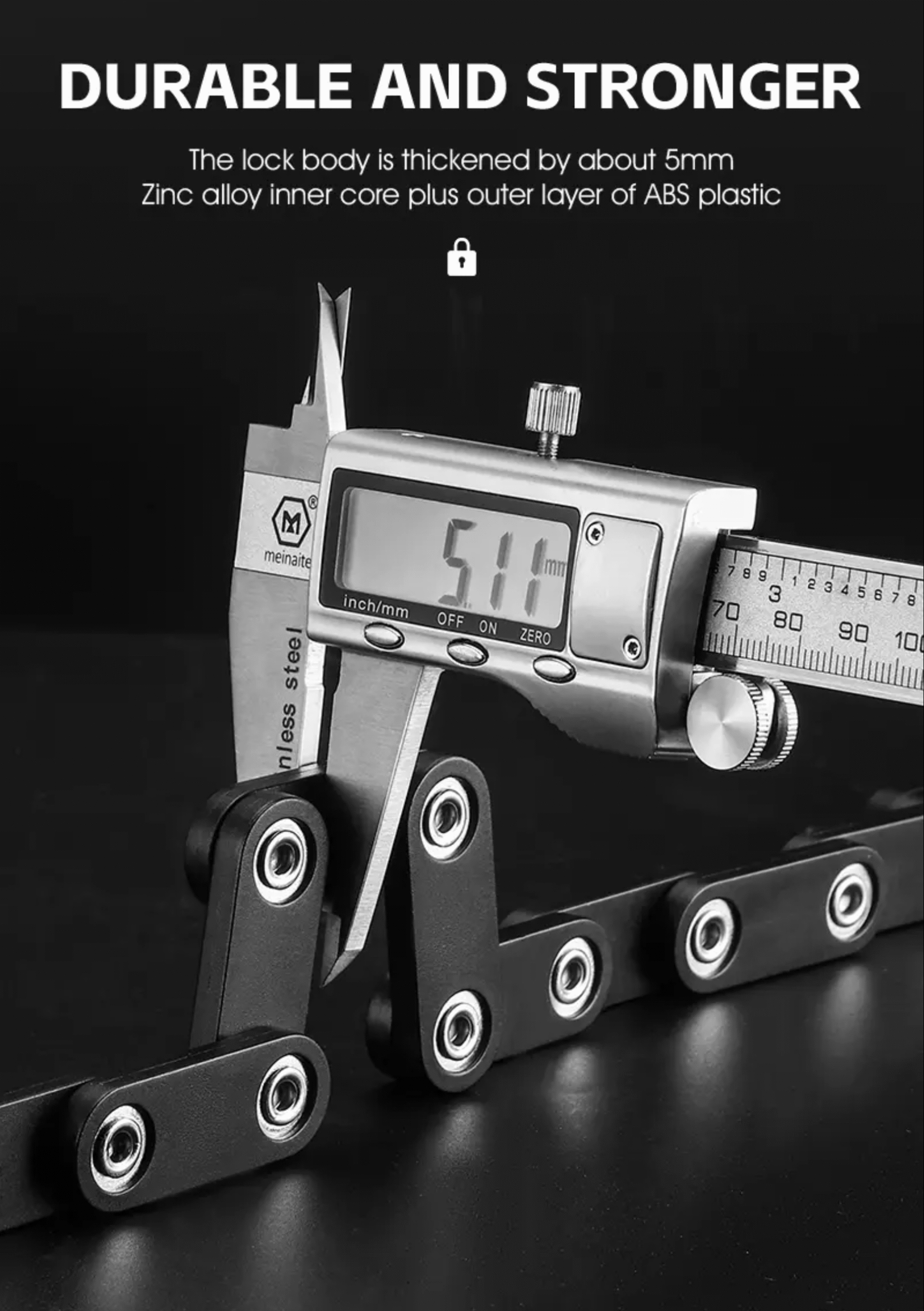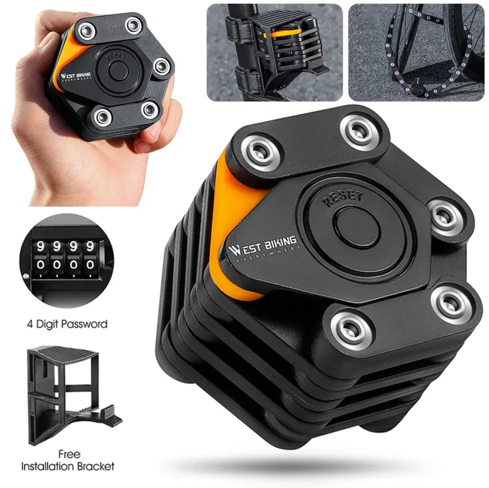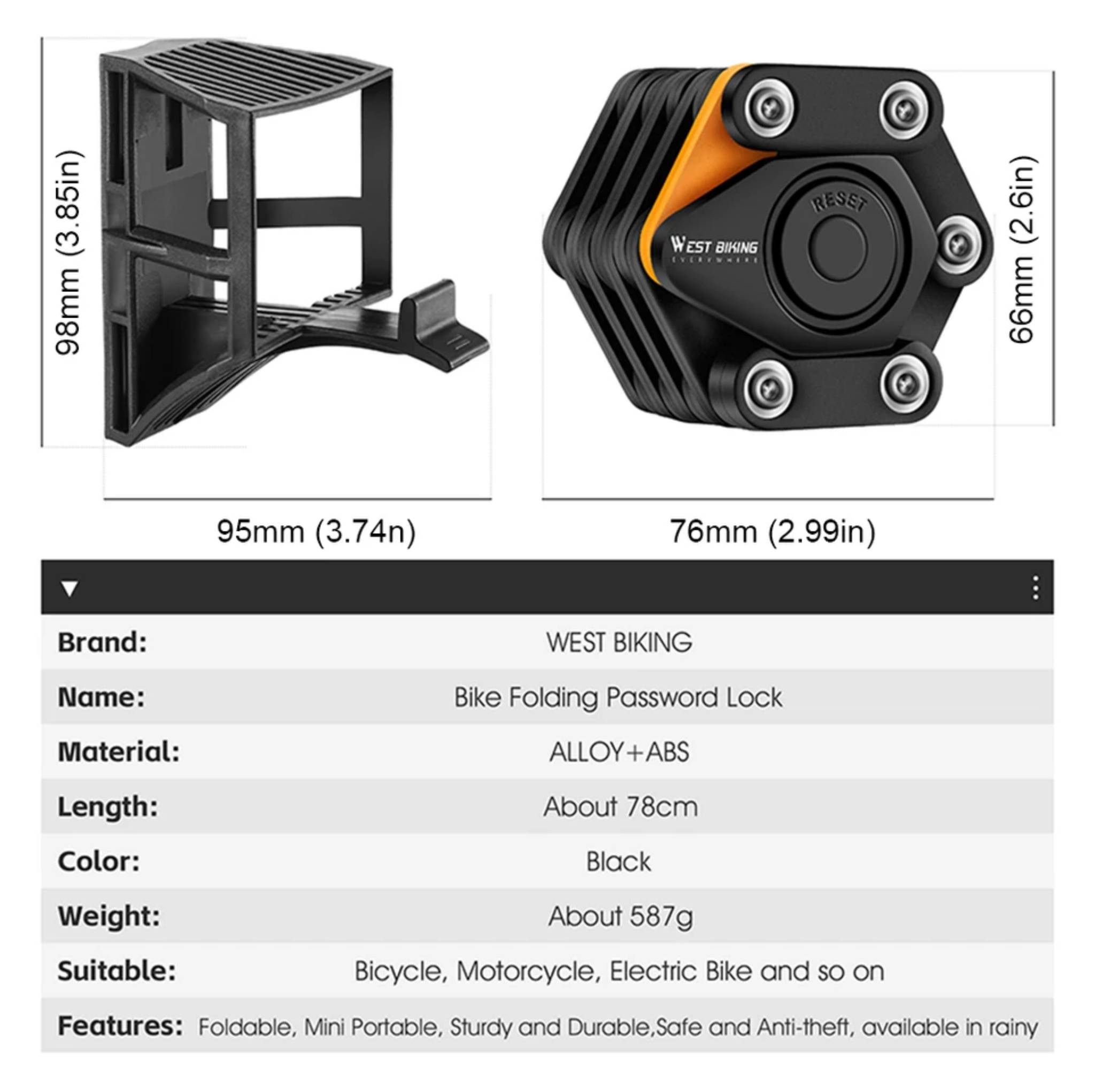 Mocne i wytrzymałe, składne zapięcie rowerowe zapinane na zamek szyfrowy. Wykonane z wysokiej jakości stopu cynku. Zapewnia najlepszą ochronę przed piłowaniem, wyłamaniem lub wierceniem. Korpus pokryty został winylową powłoką, która chroni lakier przez zarysowaniem. W zestawie znajduje się uchwyt do przewożenia zapięcia.