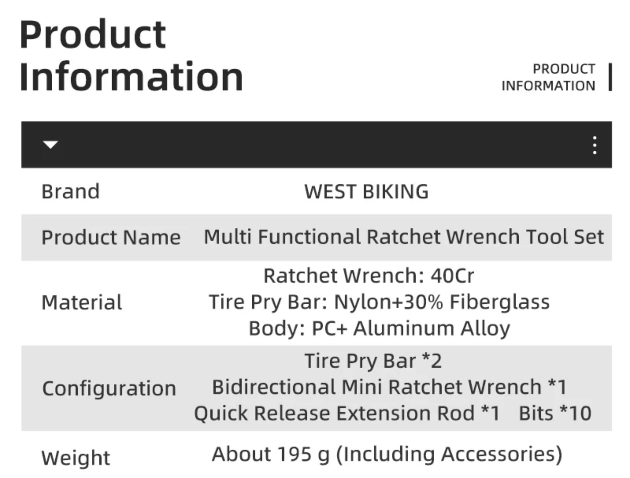 Wielofunkcyjny zestaw kluczy grzechotkowych marki West Biking